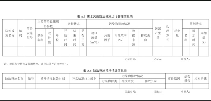 廢水治理設施環(huán)境管理臺賬主要包括廢水防治設施運行狀態(tài)、主要藥劑添加情況、污染物排放情況等內容。當發(fā)現(xiàn)污染物排放超標等異常情況時,應當立即采取措施消除、減輕危害后果,如實記錄并及時報告生態(tài)環(huán)境主管部門。廢水污染防治設施運行管理臺賬記錄、防治設施異常情況信息表可參考以下模板: