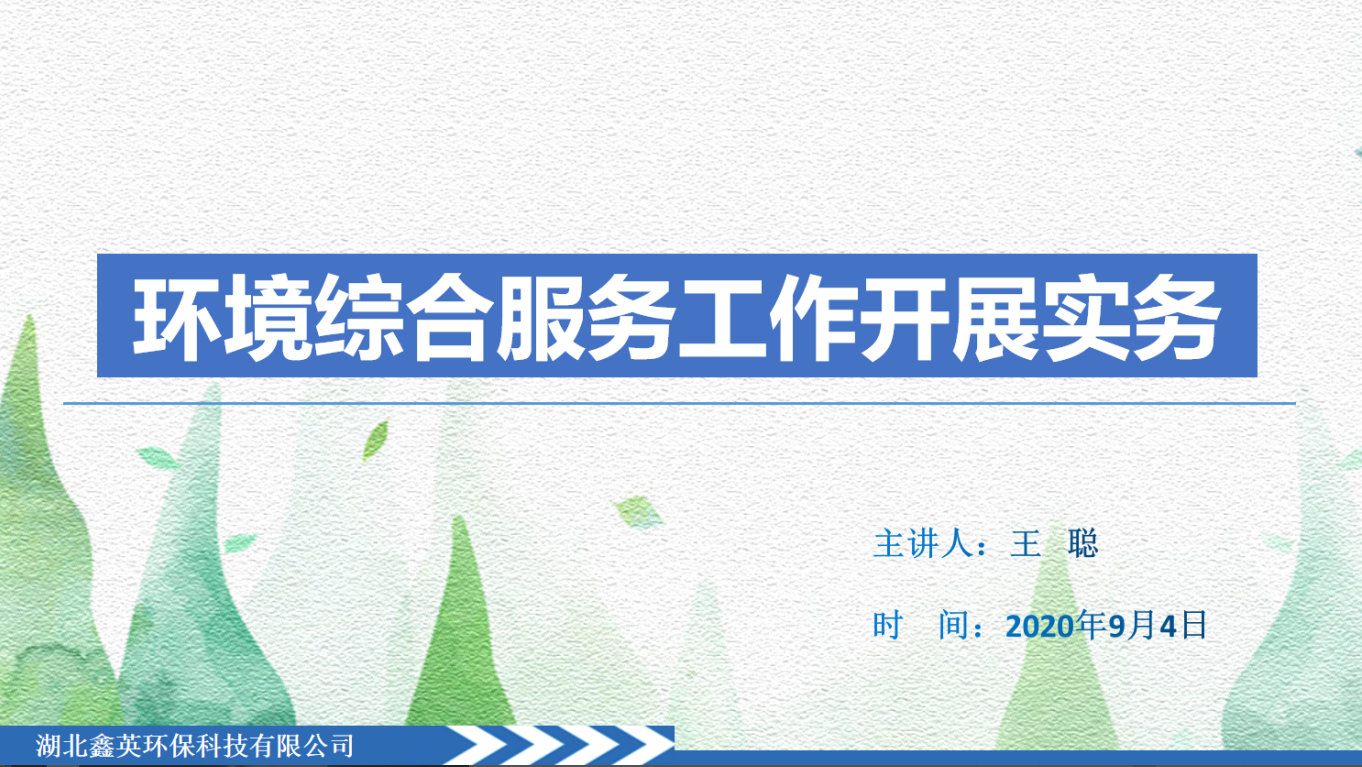 2020年9月4日上午,湖北鑫英環(huán)?萍加邢薰驹诠径䴓菚h室組織開展了《環(huán)境綜合服務(wù)工作開展實務(wù)》的主題培訓(xùn)。本次培訓(xùn)由公司技術(shù)工程師王聰主講,公司的技術(shù)部在公司的全體人員參加。