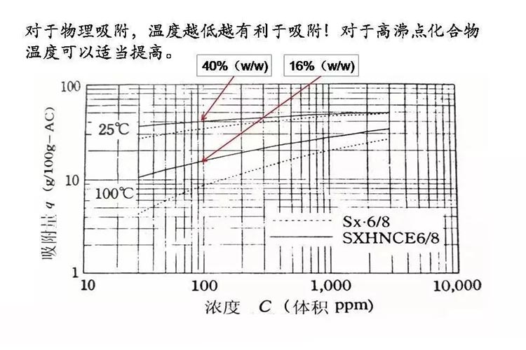 (2)高碘值活性炭(揮發(fā)份低)的疏水能力通常要優(yōu)于低碘值的活性炭;
